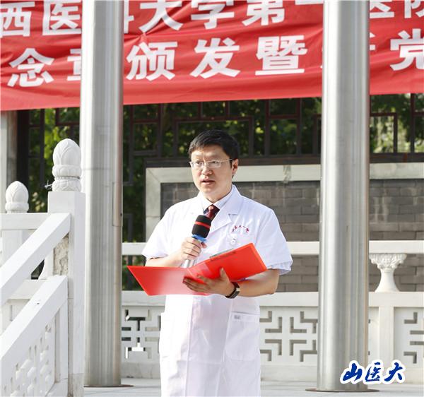 7月1日,在中国共产党成立101周年之际,第一医院在1号住院楼前广场举行“光荣在党50年”纪念章颁发暨新党员入党宣誓仪式。全体院党委委员,各党支部书记、副书记,获得“光荣在党50年”纪念章的老党员代表和2022年新入党的职工党员共计100余人参加了仪式。院党委副书记、院长张瑞平主持仪式。