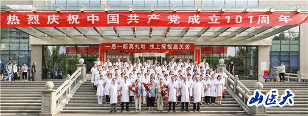 仪式在《没有共产党就没有新中国》的合唱声中圆满结束,出席仪式的全体人员在1号住院楼前合影留念。