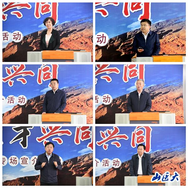 纪青详细介绍了大同市医疗资源及招聘岗位设置情况。大同市第一人民医院党委书记、院长闫莉等六位医院主要领导均为山医校友,依次深情回忆了在母校求学的点点滴滴,分别对所在医院的基本情况和招才引智计划进行了介绍,热情地向广大山医毕业生发出邀约。学校2015届硕士毕业生、大同市第一人民医院妇科主治医师崔夏夏和2012届硕士毕业生、大同市第三人民医院麻醉科副主任师瑾作为校友代表进行了发言,分享了她们在大同成长发展的故事。