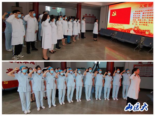 在口腔医院一层大厅,支部书记为新党员亲自佩戴了党员徽章。面对鲜红的党旗,任秀云领誓入党誓词。新老党员一起高举右手,庄严宣誓。“我志愿加入中国共产党……随时准备为党和人民牺牲一切,永不叛党。”铿锵恢宏的誓词,震撼着每一位党员的心灵,一字一句,神圣而豪迈,表达了党员干部对中国共产党的无限忠诚。