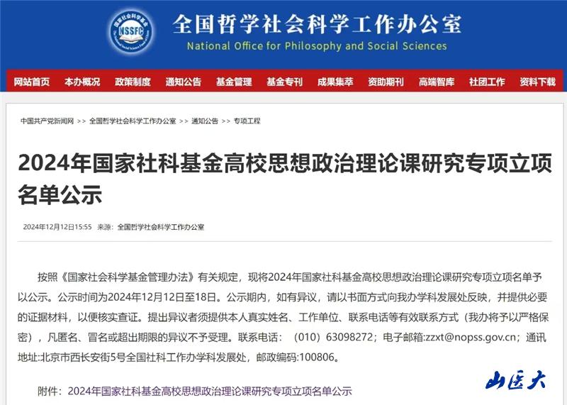 近日,全国哲学社会科学工作办公室公示了2024年度国家社会科学基金高校思想政治理论课研究专项立项名单,由我校马克思主义学院教师刘永梅主持的“‘习近平新时代中国特色社会主义思想概论’课数字化教学方法创新研究”获批一般项目。这是我校首次获批立项该类项目。