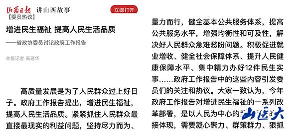 山西日报| 增进民生福祉 提高人民生活品质——省政协委员讨论政府工作报告