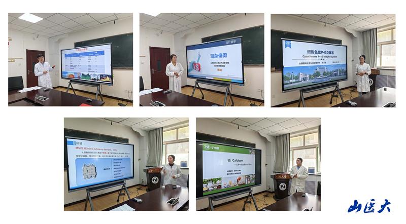 学院李锐、张越、赵倩、姬晓彤、白宇琛五位青年教师,分别以《大气气溶胶》《混杂偏倚》《细胞色素P450》《地方性氟中毒》和《钙》为题进行了教学展示。五位青年教师经过充分准备,出色发挥,展示出良好的教学水平。